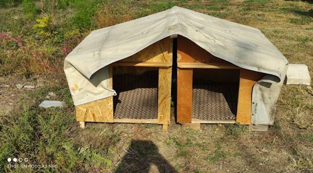 Um Spooky & Lou eine bessere Lebensqualität, sowie Schutz vor Wind und Wetter und einen Rückzugsort zu verschaffen, wurden für die beiden Hunde Spenden gesammelt und von den Einnahmen Hütten gebaut. Smaro hat die Hütte noch ein wenig wetterfest gemacht und Teppich hineingelegt.